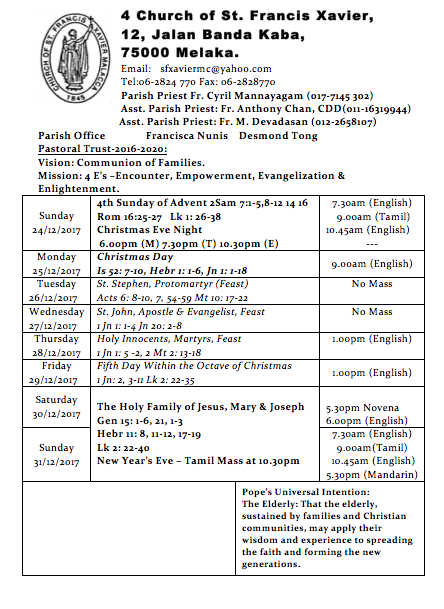 St Francis Xavier S Church Melaka Parish Bulletin 4th Week Of Advent