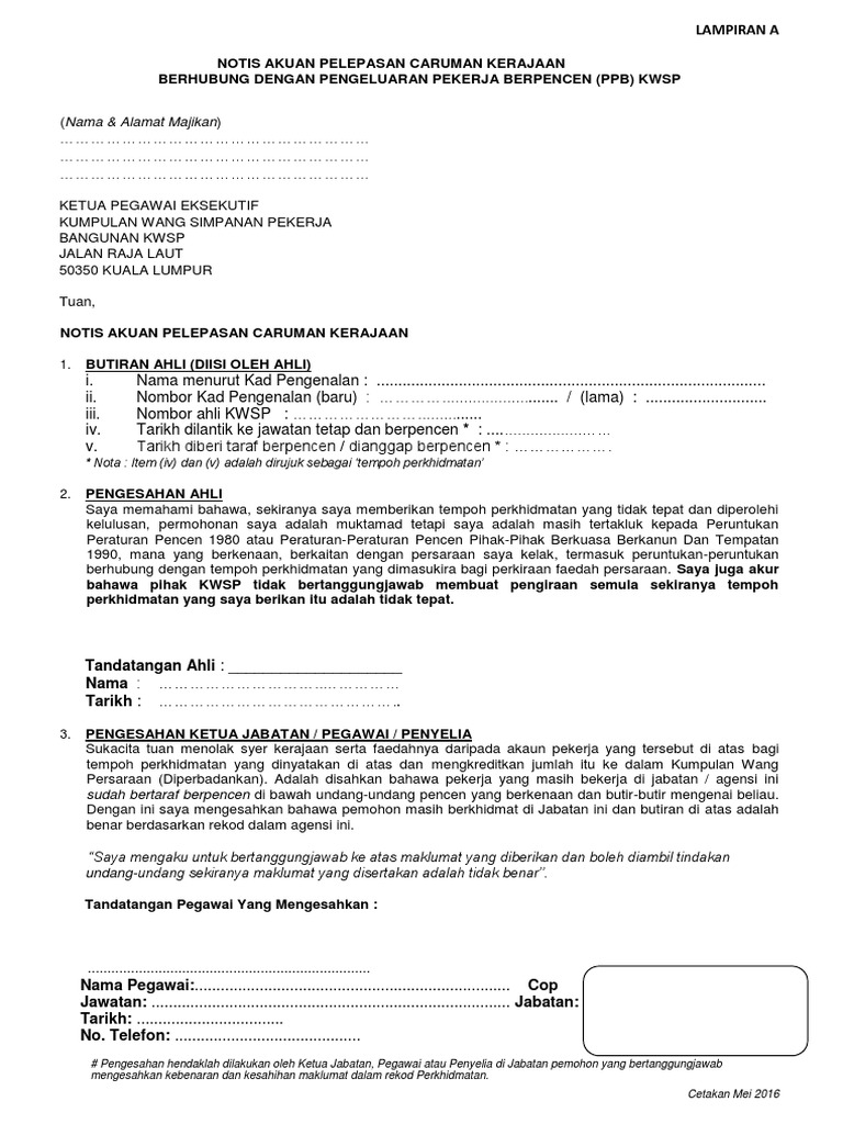 Lampiran A Notis Pelepasan Caruman Kerajaan Ppb Mei2016 02062016 Pdf